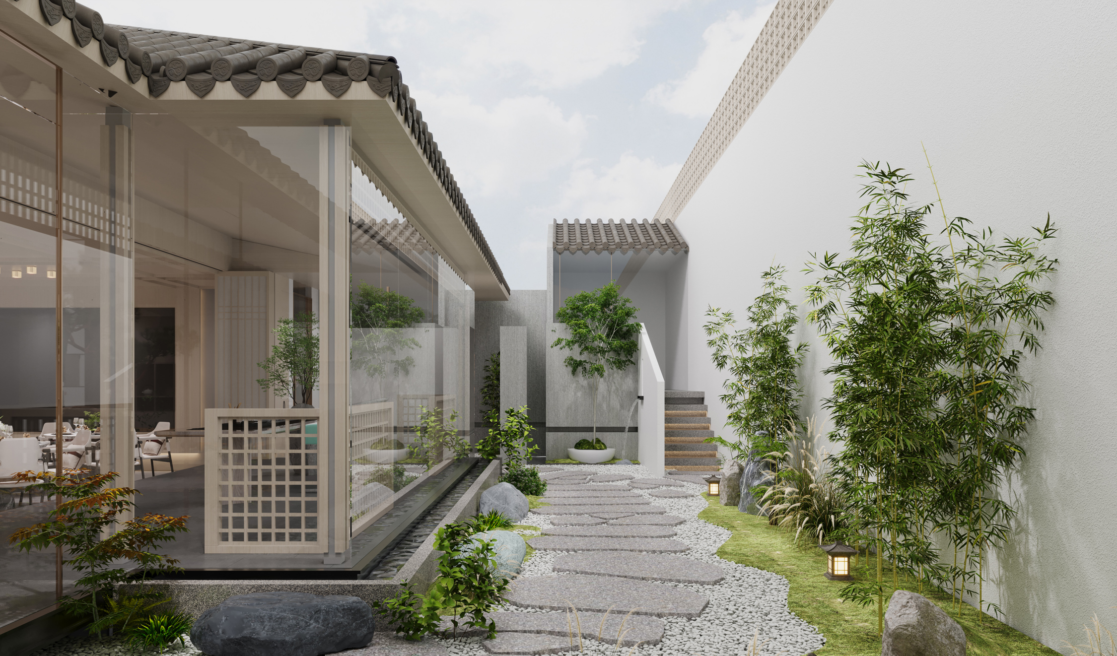 茶園金地餐廳是一家新概念粵菜餐廳。其設計是鋪開的一幅宋代美學的空間畫卷,帶你步入宋代詩詞歌賦的文化意境。